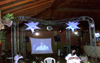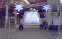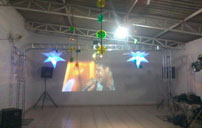 Colocamos a sua disposição um excelente equipamento de Som, Iluminação e Telão. Tudo profissional para melhor atender o seu evento.